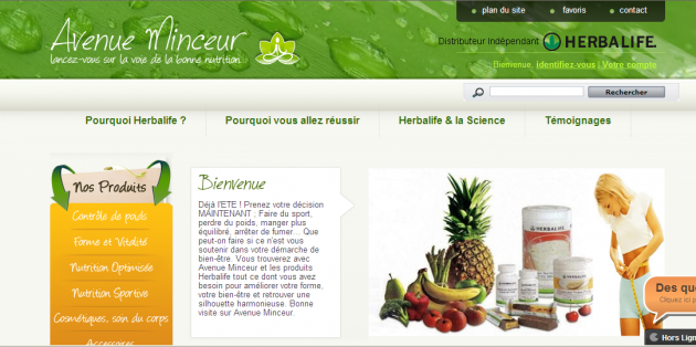 www.avenue-minceur.com est un site e-commerce d’un distributeur Herbalife, ou plutôt l’un de ses 3 sites web présents dans le monde francophone. Il est vrai que dans le monde de la vente par réseaux, il est possible de vendre dans des réunions de type Tupperware, par l’animation d’un réseau de distributeurs indépendants, ou par internet.